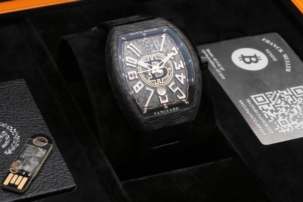 Kreiran u saradnji sa kompanijom koja se bavi trgovinom kriptovalute, Regal Assets, časovnik je dostupan u nekoliko različitih verzija za muškarce i žene, a ograničen je na petsto primeraka u svakoj varijanti. Kućište prečnika 45 mm sadrži odmah prepoznatljivi Franck Muller Cuvex oblik, brojčanik sadrži Bitcoin logo u centralnom delu i QR kod.