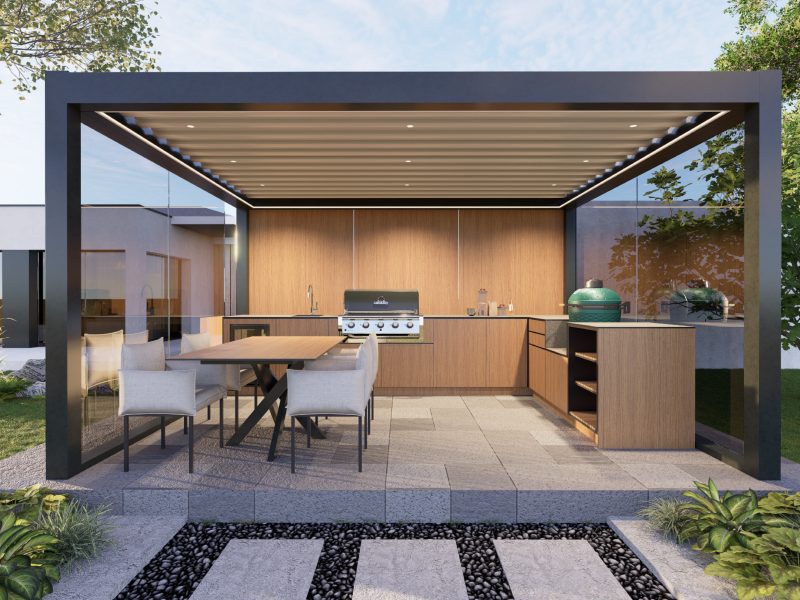 Ugaona konfiguracija L-Shape modela donosi novu dimenziju funkcionalnosti i estetike. Ovaj koncept prirodno organizuje radne zone i stvara intimniji ambijent unutar otvorenog prostora. Povećana radna površina i dodatni skladišni kapaciteti čine ga idealnim za veća dvorišta i prostore namenjene čestim okupljanjima.