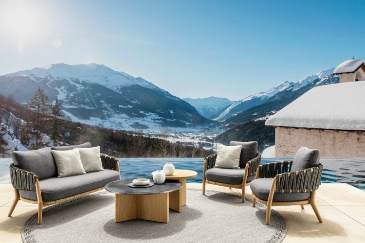 Tressé, rad Karla Kolomba, sa minimalističkim aluminijumskim okvirom i detaljima od eko-kože, nudi potpunu prilagodljivost i izdržljivost, dok Casilda kolekcija Ramóna Estevea u zimskoj verziji kombinuje tirkizne tonove sa završnom obradom od lave, spajajući geometriju čeličnog okvira sa mekanim, velikim jastucima koji pružaju izvanrednu udobnost.