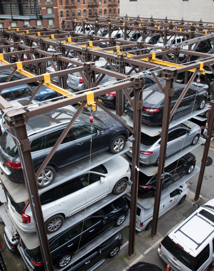 U nekim ultraluksuznim zgradama u Njujorku, robotski parking sistemi su postali neophodni, dostupni su samo stanarima i koštaju od 300.000 do 595.000 dolara.